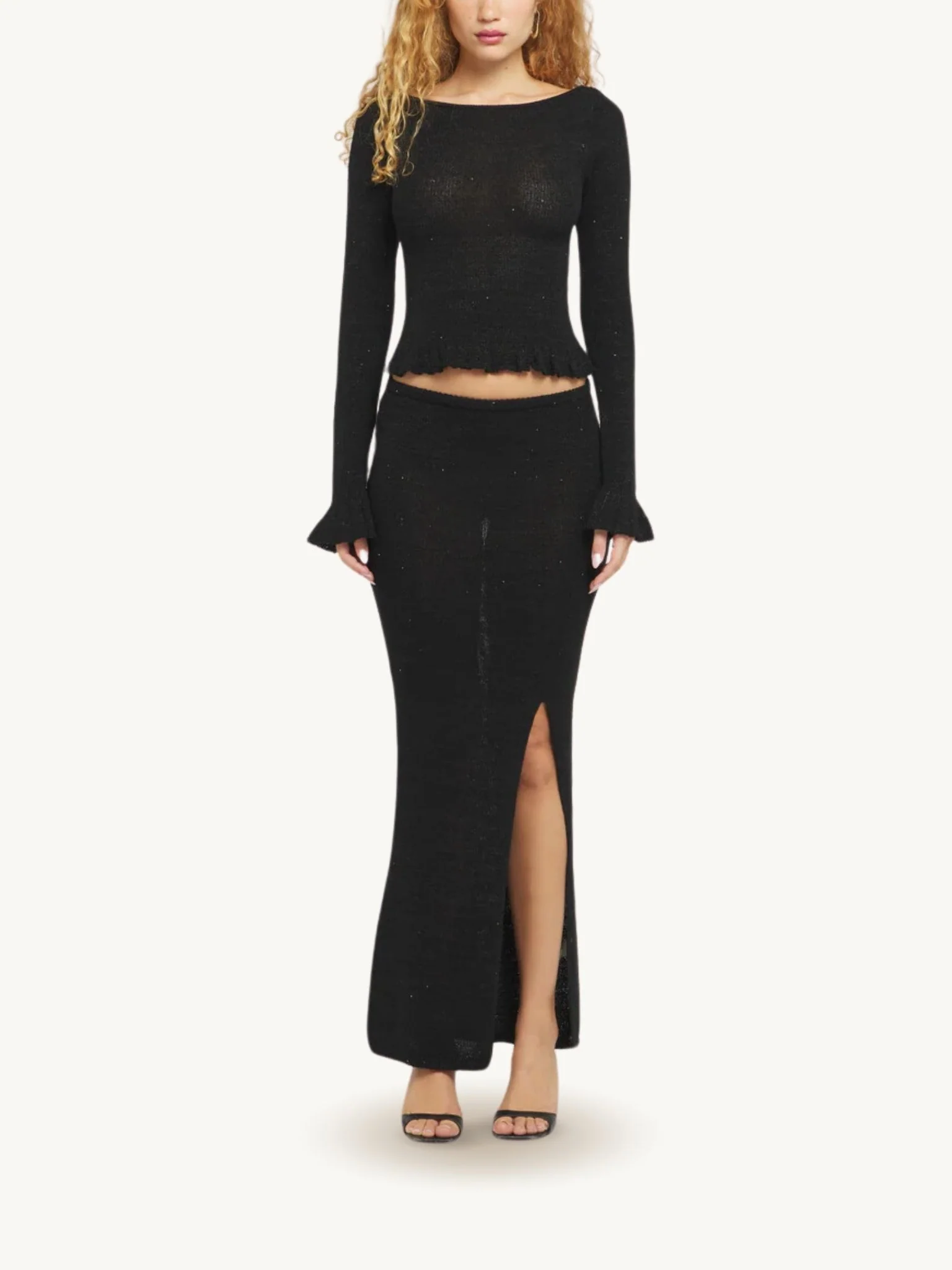 The Carolina Split Skirt in Black Sequin by ASTA RESORT.